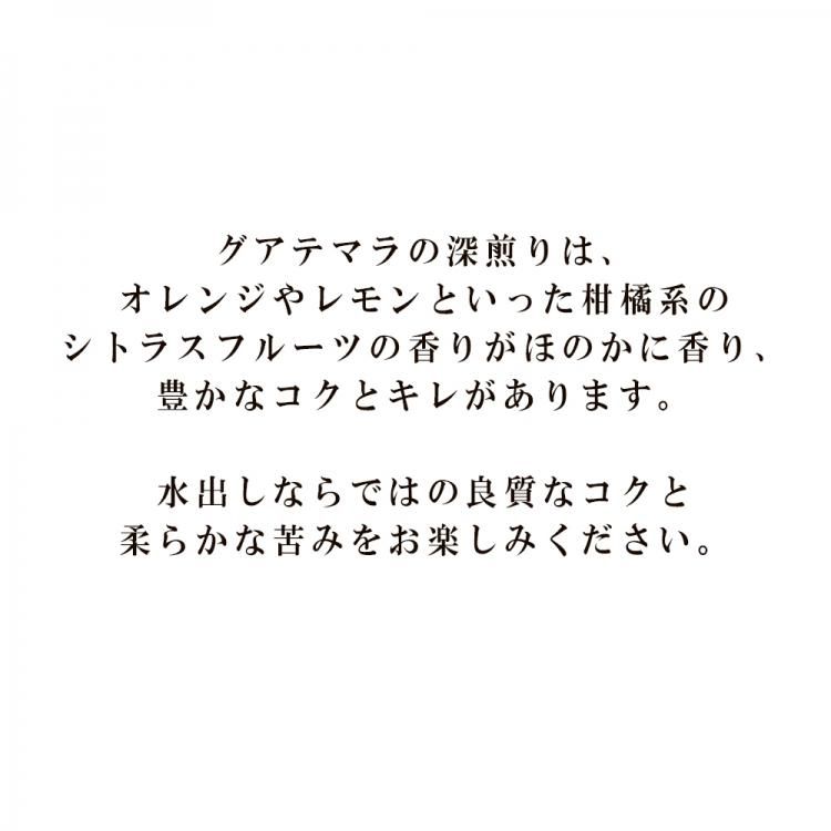 グアテマラの深煎りは、オレンジやレモンといった柑橘系のシトラスフルーツの香りがほのかに香り、豊かなコクとキレがあります。